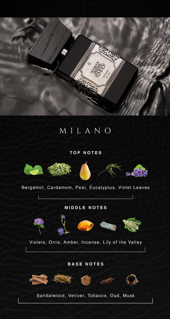 Milano has a woody and green floral presence that represents a journey through the fashion and luxury of one of the world’s most creatively influential cities.
